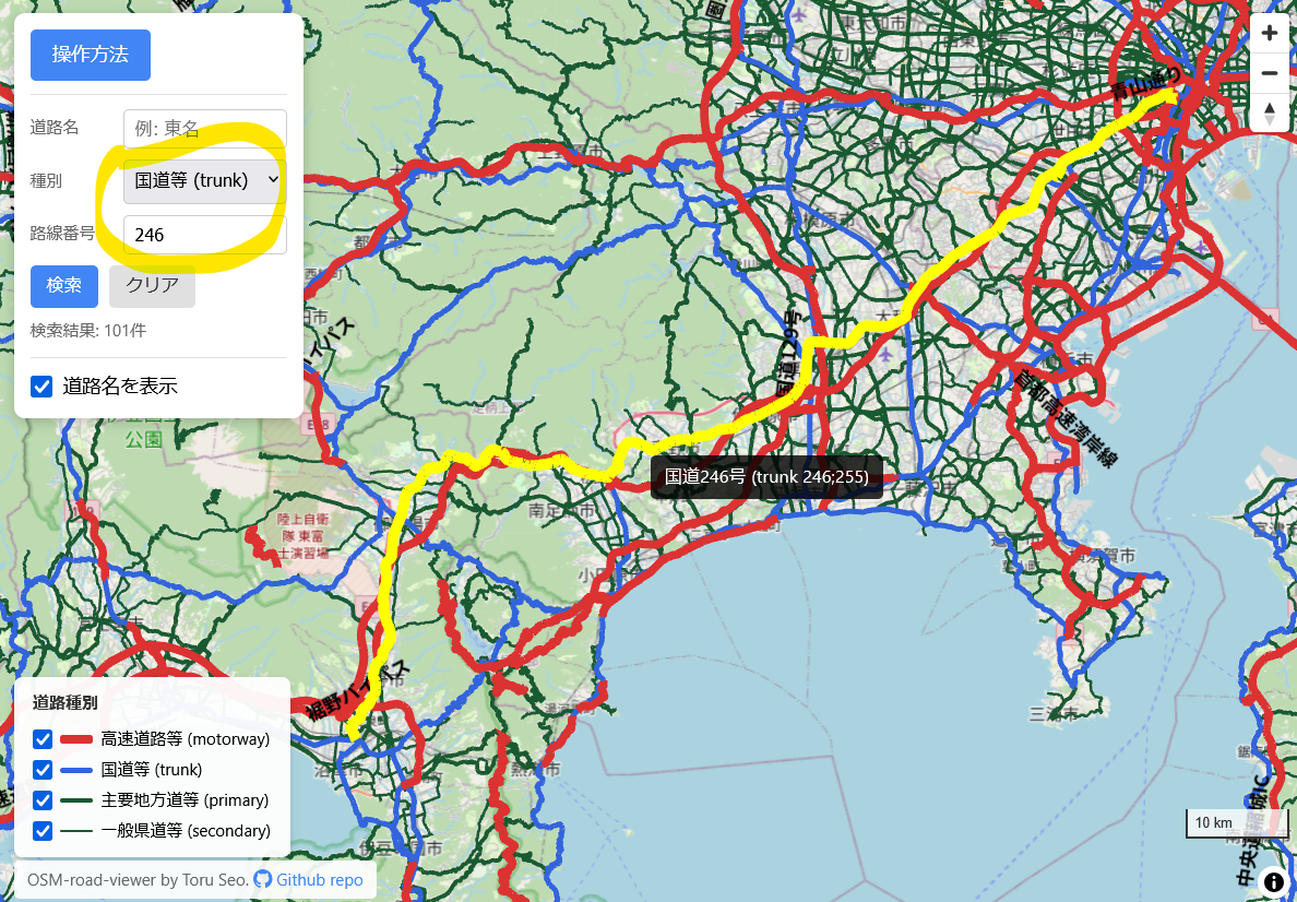 日本の道路をブラウザで閲覧・検索できるWebアプリです. 「あの道路どこだっけ?」みたいな疑問を検索で簡単に解消することを目的にしています.